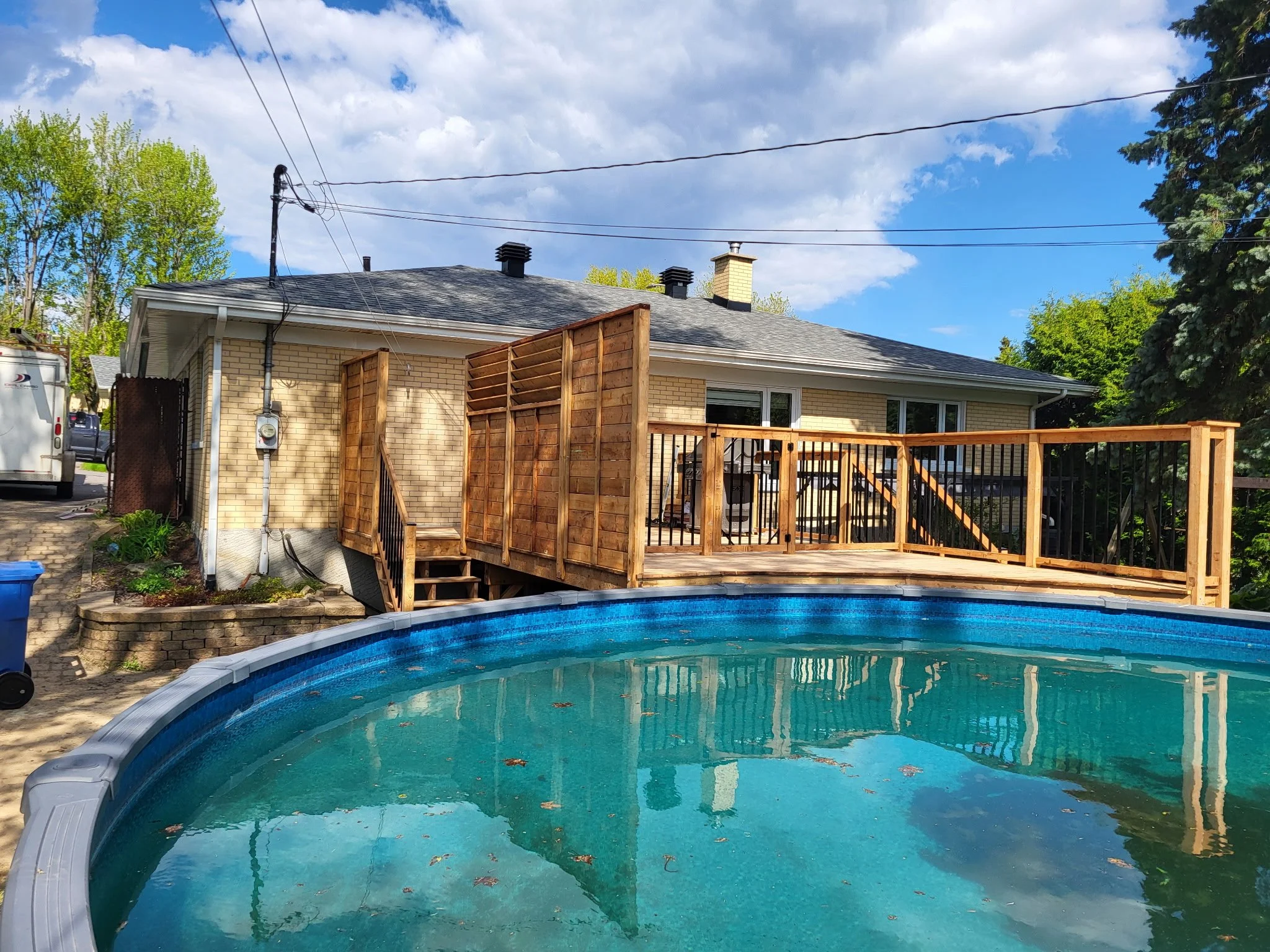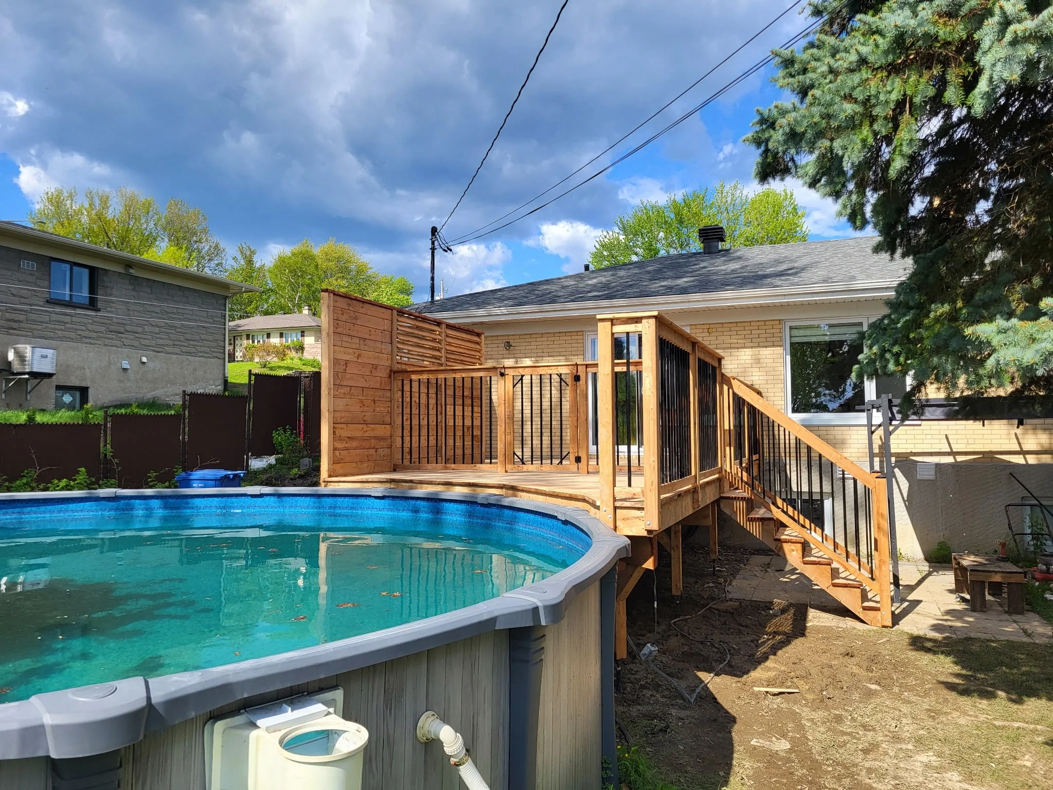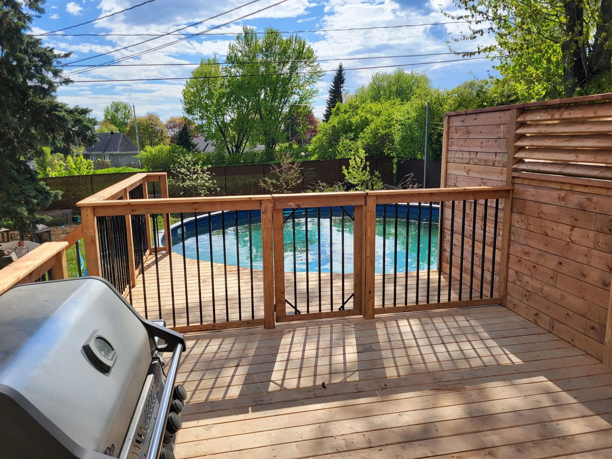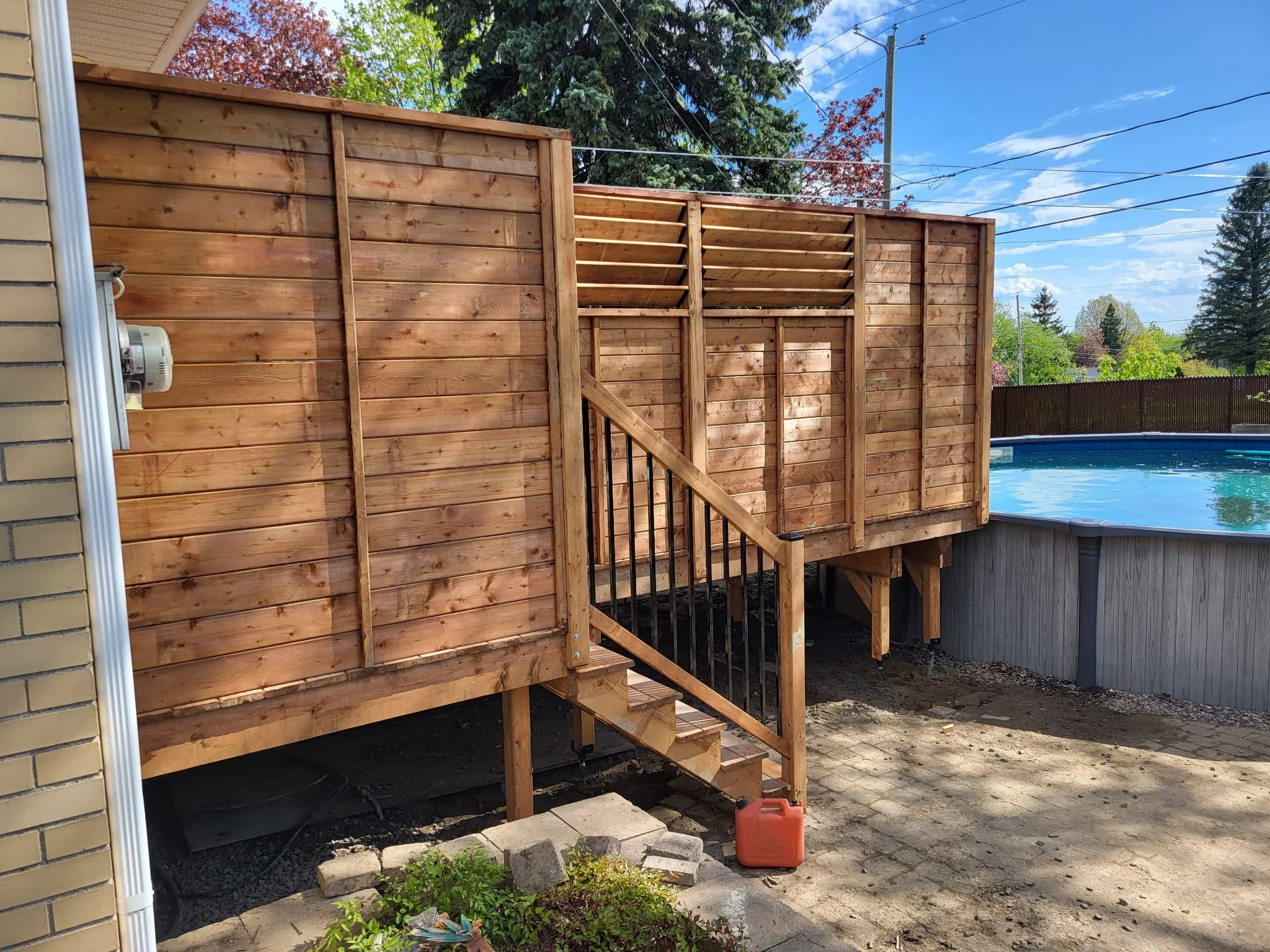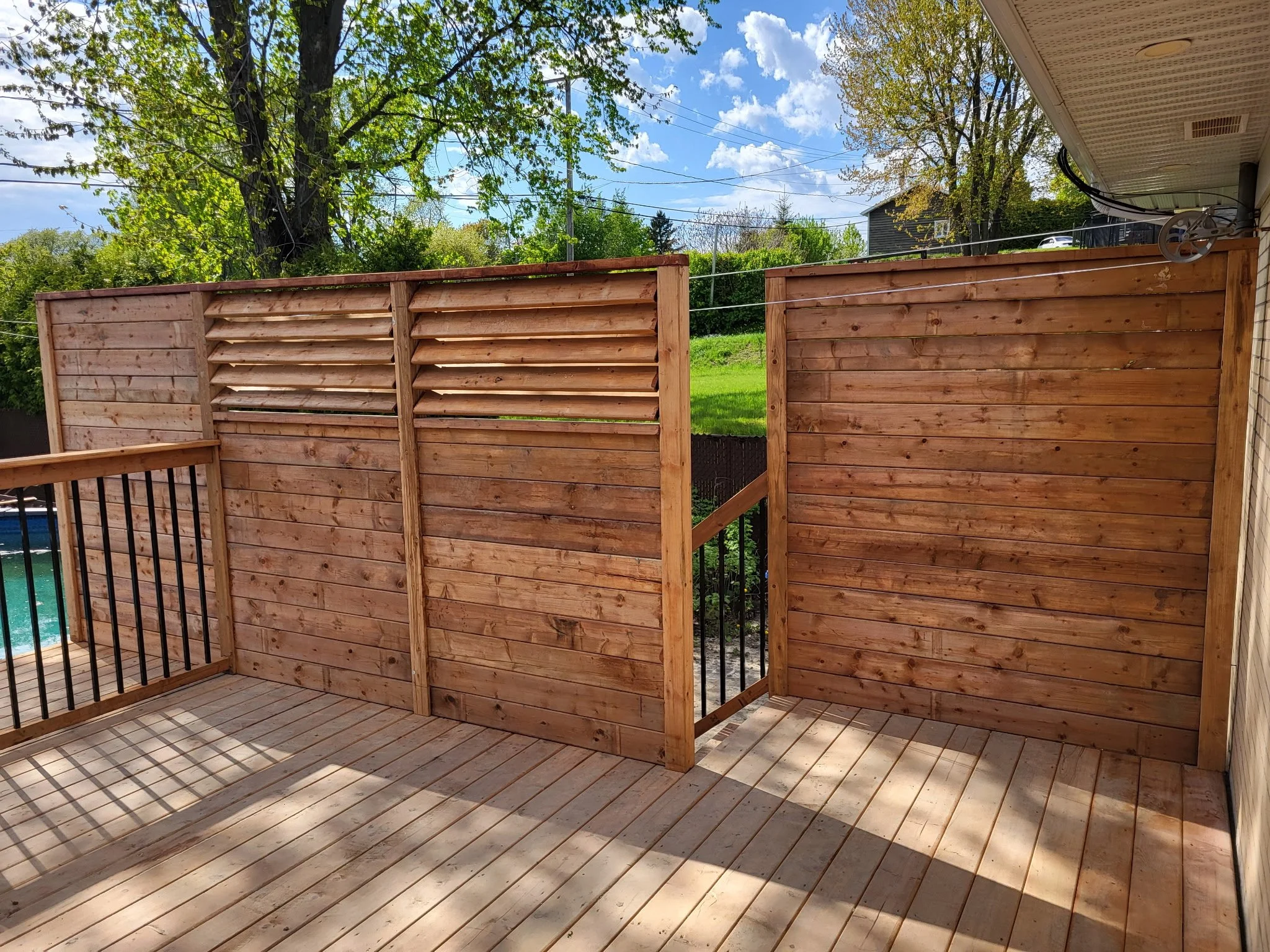CONSTRUIRE UNE NOUVELLE TERRASSE ENTRE LA MAISON ET LA PISCINE AVEC INTIMITÉ EN PLUS DE SÉCURISER L’ACCÈS À LA PISCINE